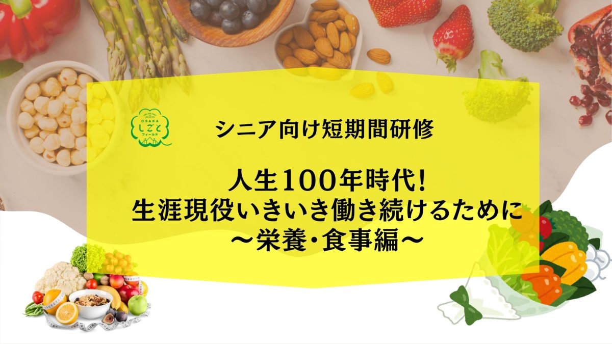 【残席わずか】【60歳以上の方対象】シニア向け短期間研修「人生100年時代! 生涯現役!いきいき働き続けるために~栄養・食事編~」